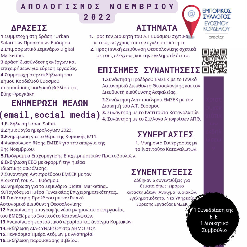✍️Ο απολογισμός του ΕΜΣΕΚ για το μήνα Νοέμβριο✍️