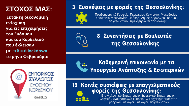 έπειτα από την επιβολή ειδικού, σκληρού lockdown στην περιοχή Δε γνωρίζουμε αν το αποτέλεσμα θα μας δικαιώσει. Αυτό που γνωρίζουμε είναι πως, εδώ και ένα μήνα (από τις 19 Φεβρουαρίου 2021), ο Εμπορικός Σύλλογος Ευόσμου Κορδελιού έχει καταβάλει